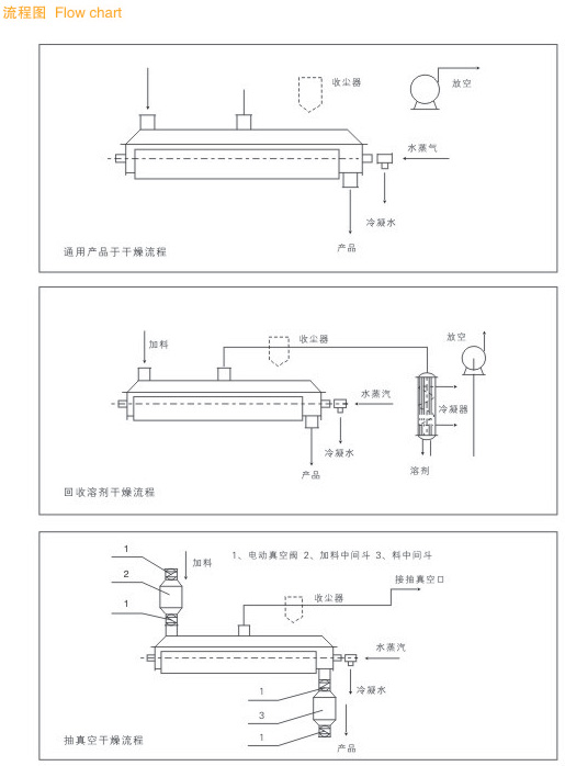 ● 處理物料范圍廣:使用不同熱介質(zhì),既可處理熱敏性物料,又可處理需高溫處理的物料。常用介質(zhì)有:水蒸汽、導(dǎo)熱油、熱水、冷卻水等。既可連續(xù)操作也可間歇操作,可在很多領(lǐng)域應(yīng)用。