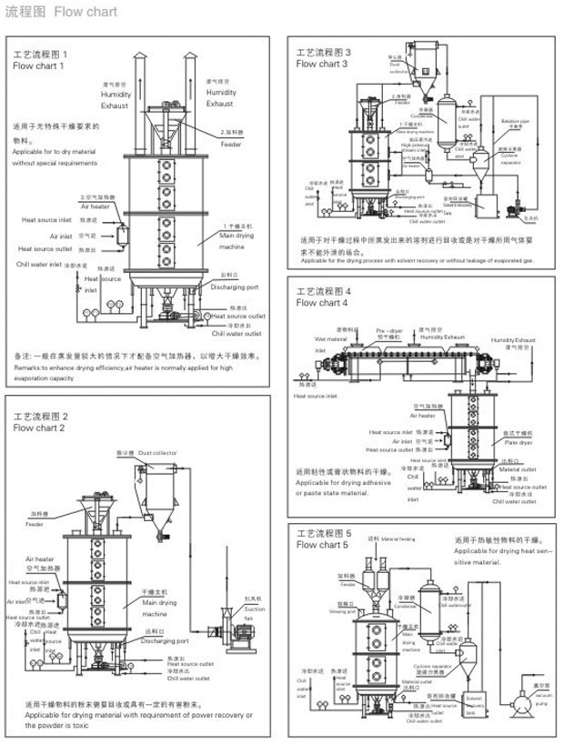 4.物料流向單一、無返混現象、干燥均勻、質量穩(wěn)定、不需再混合。